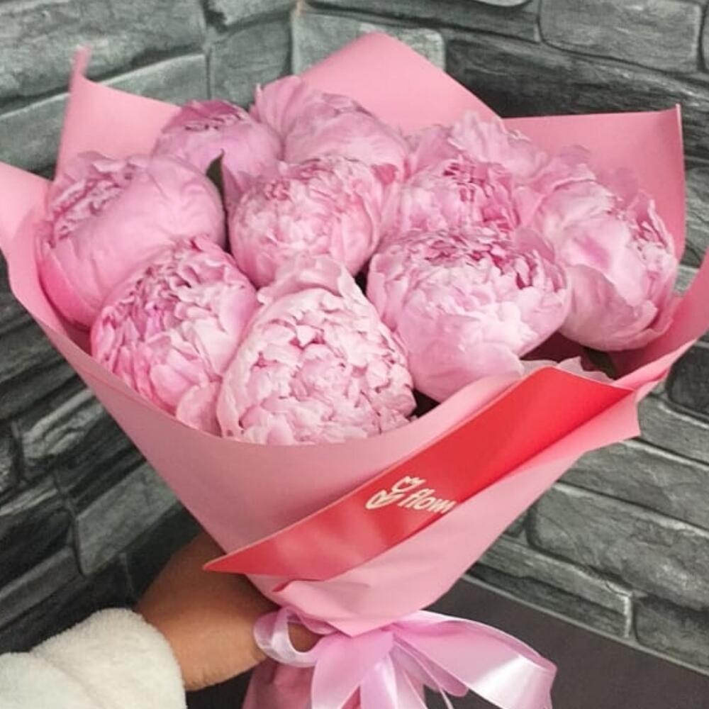 Пион Сара Бернар – 11 шт.Упаковка дизайнерская – 1 шт.Лента атласная – 1 шт.