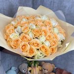 белые розы – 29 шт.Персиковая Роза – 30 шт.