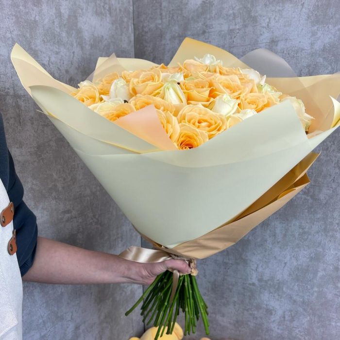 белые розы – 29 шт.Персиковая Роза – 30 шт.
